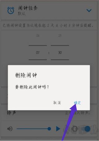 5、在打開的鬧鐘任務頁面,點擊底部中間的刪除鬧鐘,進入確認流程。