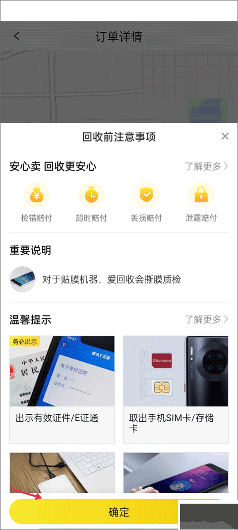 7、頁面彈出回收前注意事項,仔細(xì)查看重要說明和溫馨提示,確認(rèn)無誤后點擊 “確定”。