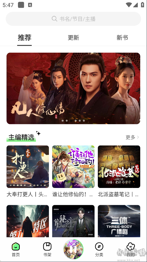 擁有百萬小時(shí)級(jí)的正版有聲內(nèi)容庫(kù),覆蓋文學(xué)名著、商業(yè)財(cái)經(jīng)、親子教育等20+內(nèi)容品類,每日更新優(yōu)質(zhì)資源,滿足不同用戶的聽書需求。