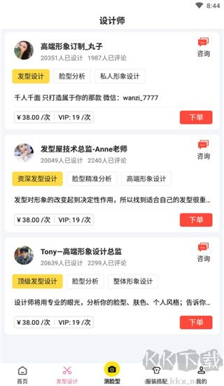2、專業(yè)設(shè)計服務(wù):由資深發(fā)型師團(tuán)隊提供在線咨詢,根據(jù)臉型、發(fā)質(zhì)量身推薦發(fā)型,解決搭配難題。