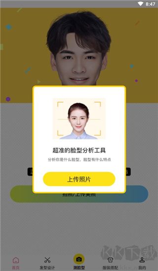 1、打開 后點擊 “測臉型” 選項,拍攝清晰正臉自拍照或從相冊導(dǎo)入。