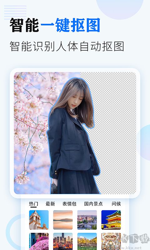 隨心使用個(gè)人照片作為背景,搭配智能摳圖功能,打造獨(dú)一無(wú)二的創(chuàng)意作品。