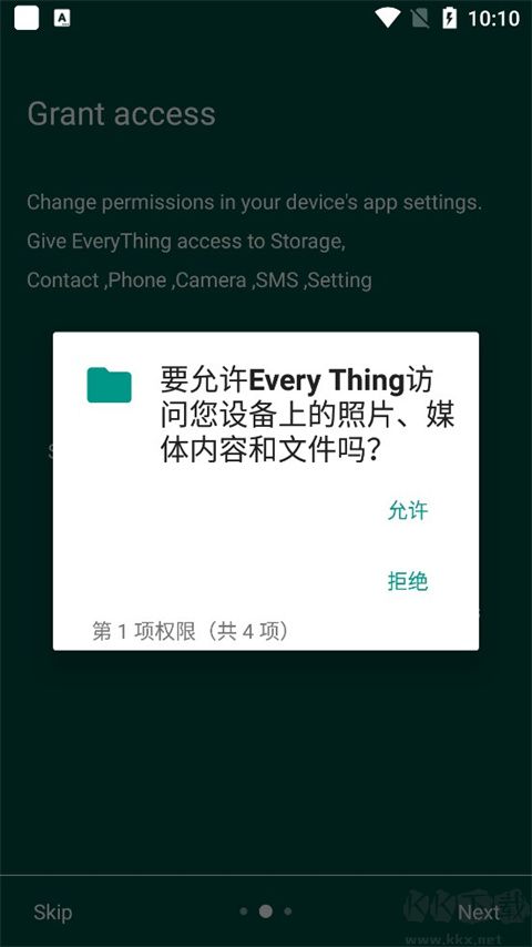 1、權(quán)限授權(quán):首次進(jìn)入 EveryThing 安卓版時(shí),需允許相關(guān)權(quán)限,否則無法正常使用。