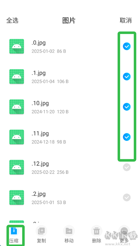 4、勾選想要壓縮的圖片后,點(diǎn)擊 “壓縮” 按鈕。