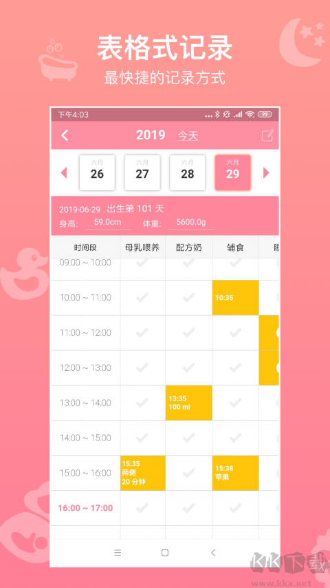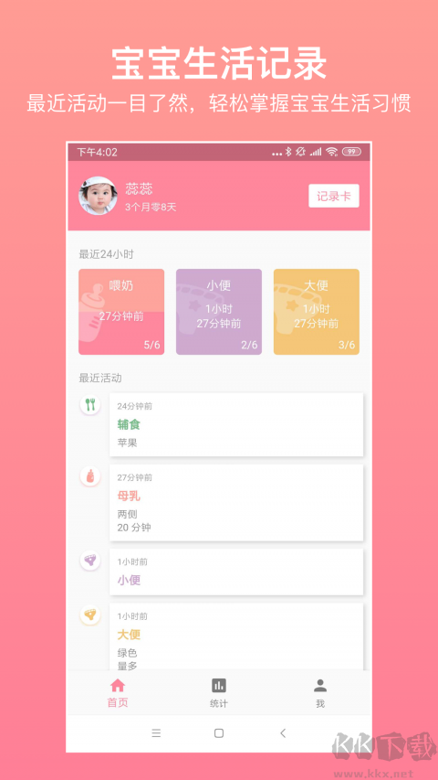 3、【快速記錄】操作簡單又實用,最快1秒就能完成記錄,還能添加詳細備注,比如寶寶的狀態(tài)、注意事項,或者記錄你和寶寶的溫馨時刻。