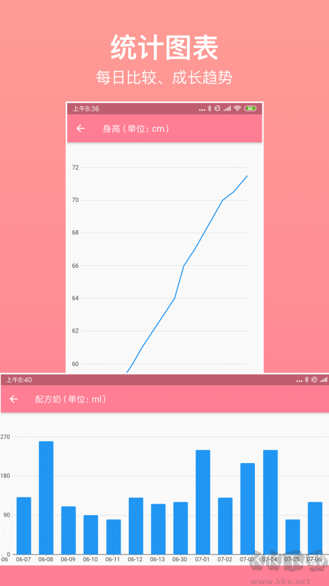 6、【智能統(tǒng)計分析】重要數(shù)據(jù)自動生成統(tǒng)計報表,24小時動態(tài)更新,讓你隨時掌握寶寶最新狀態(tài)。
