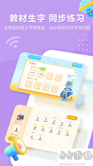 配合智能寫字筆使用,實(shí)現(xiàn)紙質(zhì)書寫與數(shù)字反饋的完美結(jié)合,包含【快樂(lè)練字】和【數(shù)學(xué)闖關(guān)】等多樣化學(xué)習(xí)模塊,讓知識(shí)獲取更有趣。