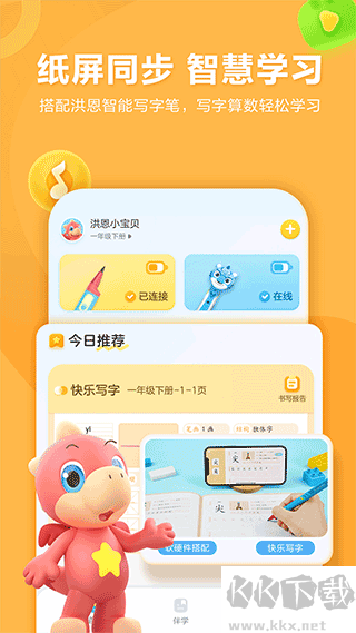 3、【智能練字 互動(dòng)有趣】搭配洪恩智能寫字筆使用,線下書寫實(shí)時(shí)同步到App,練字過(guò)程可視化,讓寫字學(xué)習(xí)更有趣;