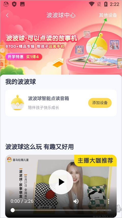 4、波波球智能點(diǎn)讀音箱的用戶可以在打開的新頁面中按頁面提示進(jìn)行操作即可,其他設(shè)備用戶需要在打開的新頁面中點(diǎn)擊【添加設(shè)備】