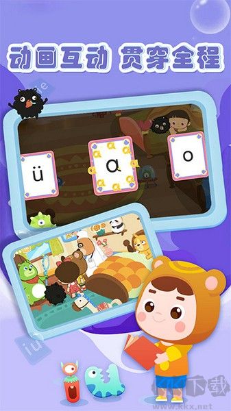 3、【創(chuàng)意拼音形象】精心設(shè)計了63個可愛的拼音小怪物,每個字母都有獨特造型,幫助孩子輕松記憶拼音字形和發(fā)音,學習更有趣。