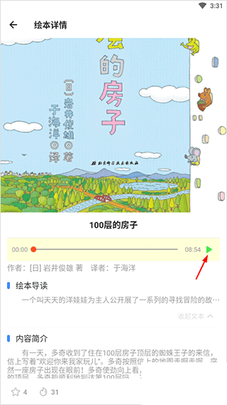 4、找到寶寶想要閱讀的書籍后,點(diǎn)擊下方播放按鈕即可進(jìn)行跟讀了
