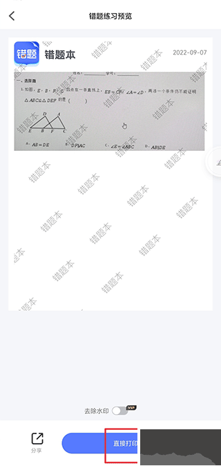 4、在手機(jī)與打印機(jī)連接后,點(diǎn)擊直接打印即可打印錯(cuò)題