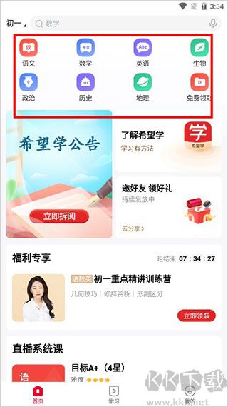 希望學App是一款學生在線學習軟件,提供豐富的課程資源和實用的學習功能,軟件涵蓋多個學科,包括數(shù)學、語文、英語等,內(nèi)容與教材同步,適合不同年級的學生使用,用戶可以通過視頻課程、在線練習和模擬測試鞏固知識,查漏補缺,隨時隨地學習,智能錯題本自動收集練習中的錯誤,方便重點復習,家長可以通過學習報告了解孩子的進度,及時調(diào)整學習計劃,讓學生在課后自主提升,讓學習更高效、更有針對性。
