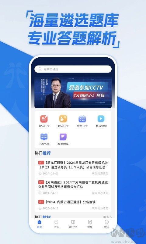 北辰遴選app是一款于公務(wù)員和事業(yè)單位考試的備考軟件。該軟件提供大量真題題庫(kù),涵蓋行測(cè)、申論、公共基礎(chǔ)知識(shí)等考試科目,用戶可隨時(shí)在線練習(xí),軟件根據(jù)考試大綱和歷年命題規(guī)律,定期更新題庫(kù)內(nèi)容,確保題目時(shí)效性,智能組卷功能可按照用戶需求生成模擬試卷,支持自定義題型和難度,錯(cuò)題自動(dòng)歸檔功能幫助考生針對(duì)性復(fù)習(xí)薄弱環(huán)節(jié),備考資料板塊整理了大量政策文件、時(shí)事熱點(diǎn)和寫作范文,方便用戶查閱學(xué)習(xí)。