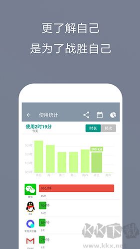 3、【精準數(shù)據(jù)統(tǒng)計】詳細記錄每天手機使用時長、APP使用情況,生成可視化報表,讓你清楚自己的時間都去哪兒了。