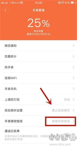 3、在打開的管理頁面,下方找到手表接收短信的選項