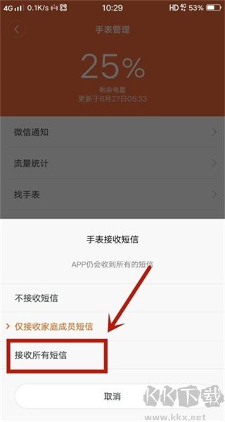 4、在下方打開的菜單中,選擇接收所有短信即可