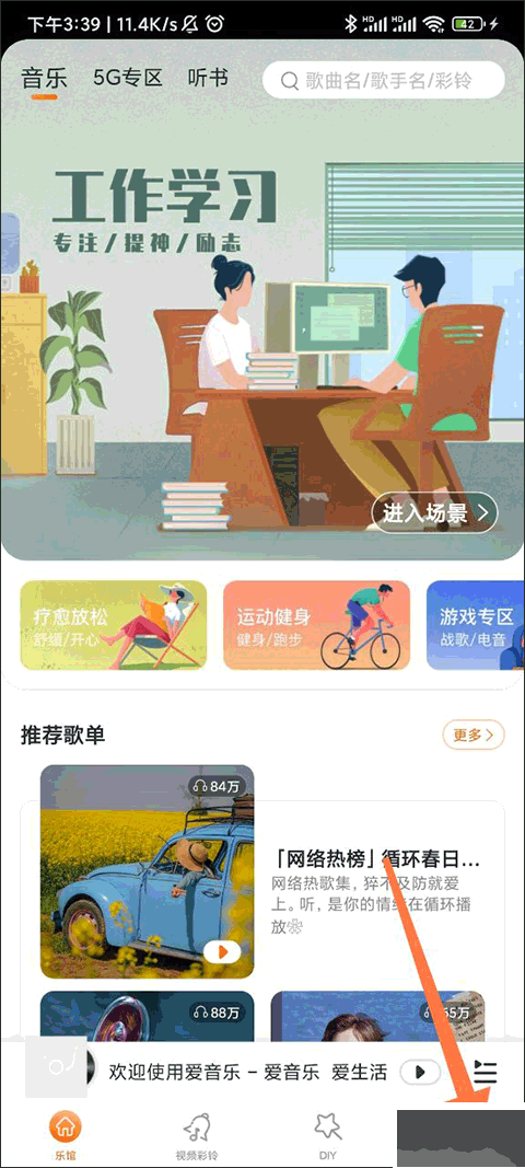 1、進(jìn)入主界面,根據(jù)個(gè)人聽(tīng)歌習(xí)慣推薦歌單