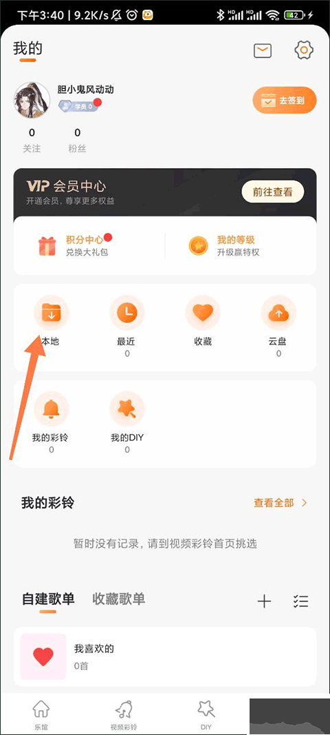 3、選擇“本地”進(jìn)入本地音樂(lè)管理頁(yè)面,這里初次進(jìn)入可能未顯示本地音頻