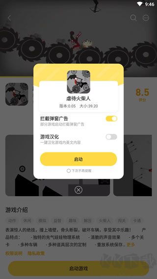 4、在游戲啟動(dòng)過(guò)程中,留意界面,點(diǎn)擊 “攔截彈窗廣告”,即可暢享無(wú)廣告游戲體驗(yàn)。