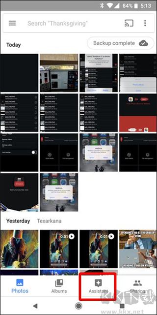 1、打開谷歌相冊,點擊底部 “助理” 按鈕,頂部會顯示相冊、電影、動畫等主要選項。
