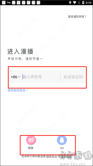 1、首先進行賬號登錄,支持使用手機號、微博、QQ三種登錄方式;