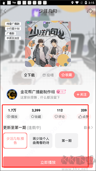 4、在播放廣播劇的同時不僅可以看到字幕,還可以在上分看到小伙伴們發(fā)送的彈幕;