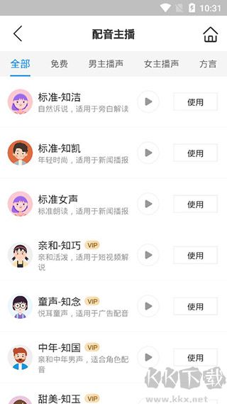 3、【真人級(jí)發(fā)音】70多種主播聲音可選,涵蓋11種方言和語言,包括普通話、粵語、四川話、東北話、湖南話、臺(tái)灣腔、陜西話、河南話、湖北話,還有英式英語和美式英語。