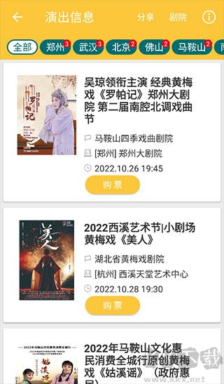 7、點擊 “演出” 可查看各地演出信息與劇院詳情,支持線上就近購票。