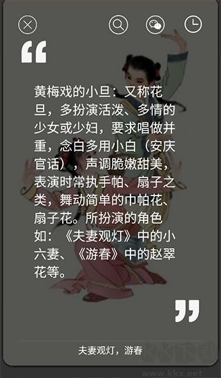 6、返回首頁可點擊 “百科”,隨機了解黃梅戲經(jīng)典文化科普內(nèi)容。