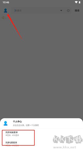 1、點(diǎn)擊左上角進(jìn)入個(gè)人中心,在界面下方找到 “同步網(wǎng)易歌單” 選項(xiàng)。