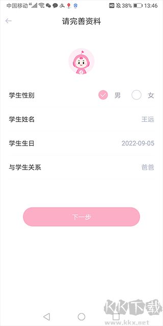 2、點(diǎn)擊該按鈕進(jìn)入新頁(yè)面,完善家長(zhǎng)信息和孩子資料。