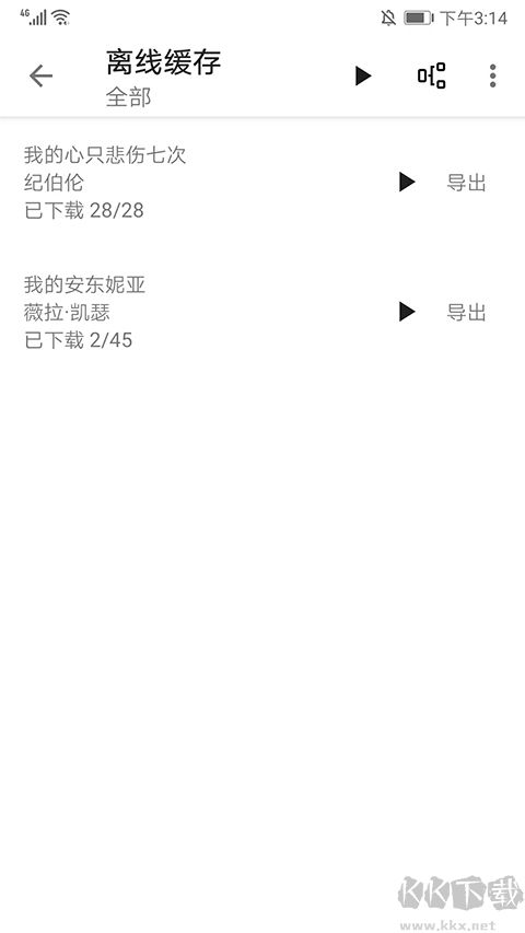 2、進(jìn)入離線緩存界面,選擇需要緩存的小說后面的【導(dǎo)出】選項(xiàng),這里以我的心只悲傷七次為例,