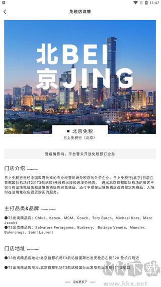 3、點(diǎn)擊 “免稅店” 可查看國內(nèi)免稅店城市,點(diǎn)擊對應(yīng)城市顯示該地區(qū)店鋪及地址。