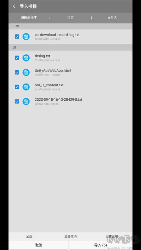 5、導(dǎo)入目錄選擇好以后,再選擇要導(dǎo)入的書籍類型,點擊“確定”按鈕后,應(yīng)用便開始掃描指定目錄下的書籍,并在導(dǎo)入之后給出一個已導(dǎo)入書籍的列表