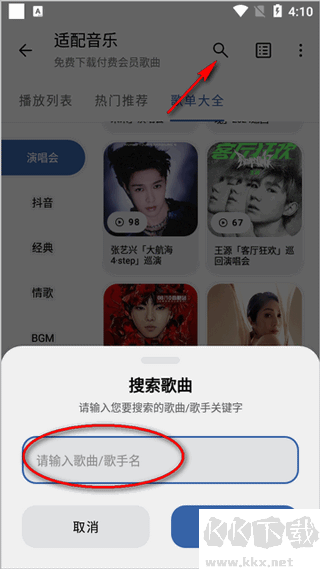 2、點擊搜索可以輸入歌曲或者歌手名;