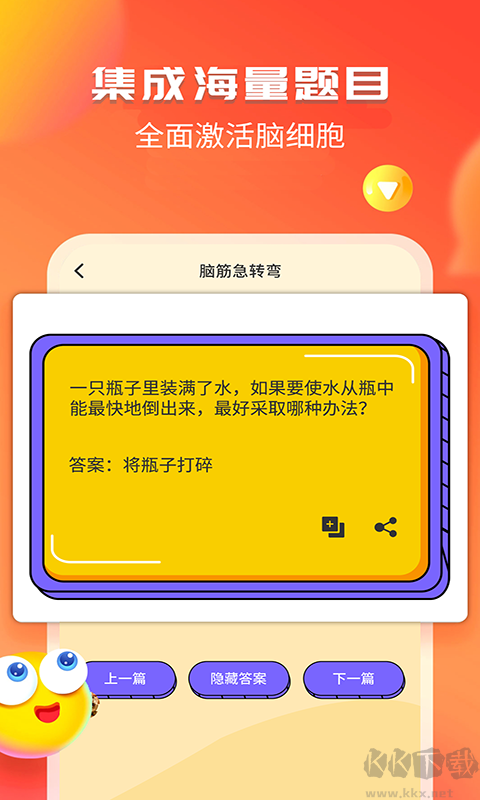 3、【燒腦急轉(zhuǎn)彎挑戰(zhàn)】除了爆笑段子,還有超多腦洞大開的急轉(zhuǎn)彎題目,邊玩邊練腦,歡樂又益智!