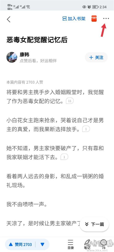 1、打開自己想要復(fù)制的小說界面,選擇右上角的三個點服務(wù)。