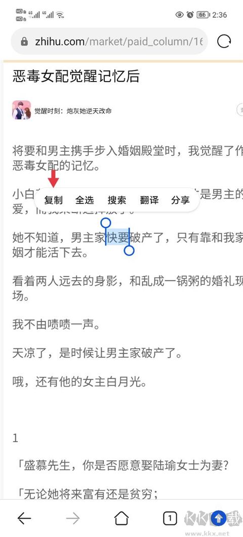 4、在瀏覽器打開之后就可以長按對文字進行復(fù)制了。