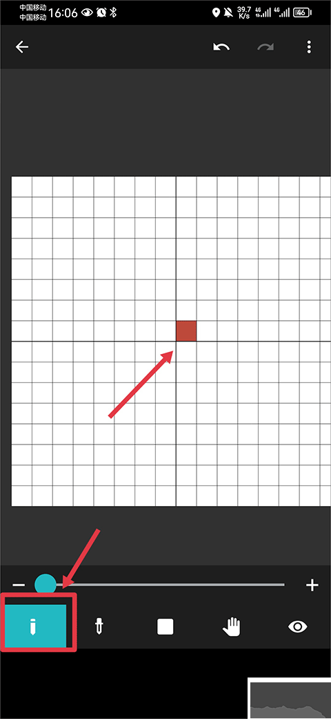 3、最后選中第一個(gè)畫筆工具后就可以在畫布小格子中進(jìn)行顏色填充啦