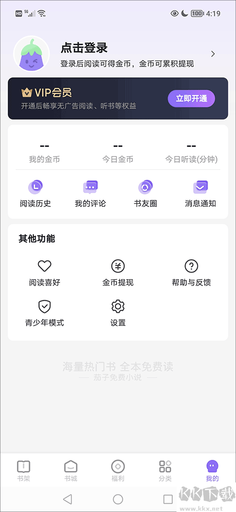 1、打開(kāi)茄子免費(fèi)閱讀小說(shuō)app后,點(diǎn)擊【我的】