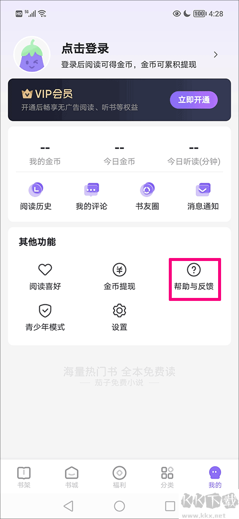 打開(kāi)后,找到【我的】-【幫助與反饋】。