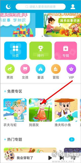 1、打開少兒故事app,進入主頁登錄,找到要下載的故事;