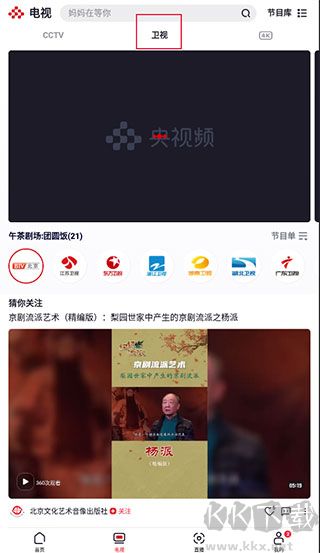 2、然后左右滑動CCTV頻道,點擊上方也可以切換到【衛(wèi)視】,點擊【節(jié)目單】查看當前頻道的所有節(jié)目;