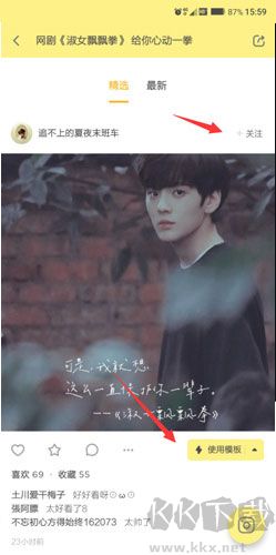 3、然后選擇使用模板就可以了?;蛘吣阆氤掷m(xù)關(guān)注這個(gè)模板作者,你可以右上角點(diǎn)擊關(guān)注就可以了。