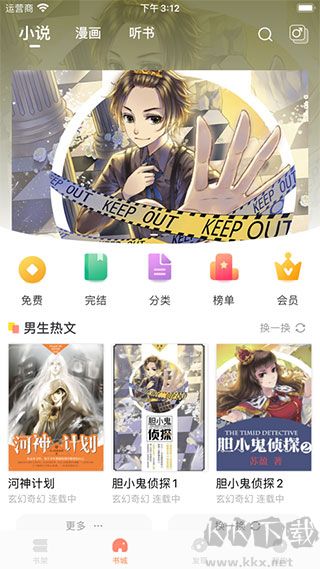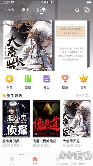 1、進入主界面可以看到提供了漫畫、小說以及聽書的功能