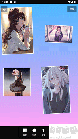 5、也可以單擊背景,對(duì)背景進(jìn)行更換、添加貼紙、文本等操作;