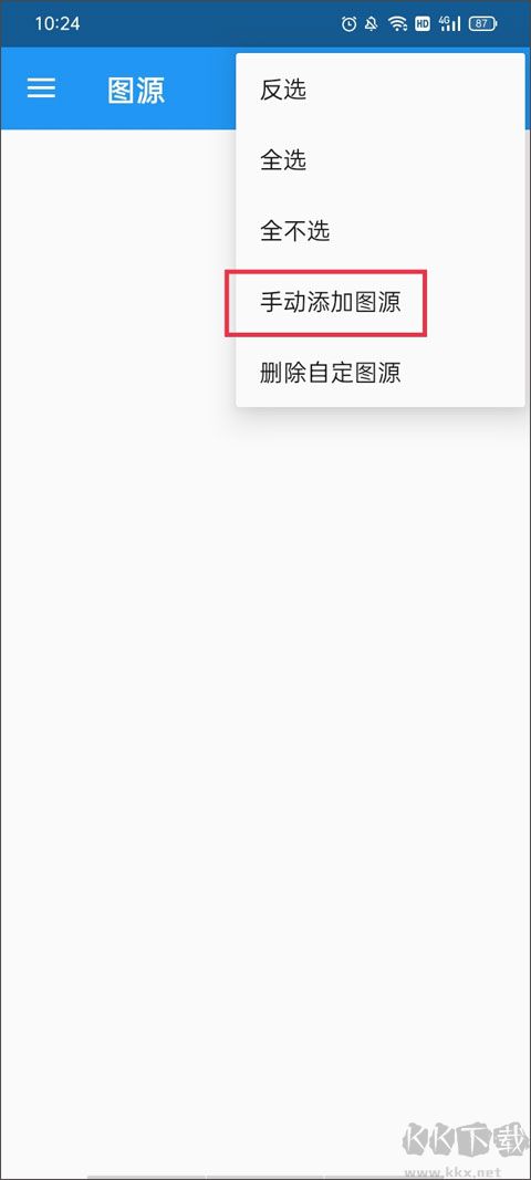 3、進入后能看到所有已安裝的圖源,接著點擊右上角的“三個點”圖標,在彈出的選項中選擇“手動添加圖源”。