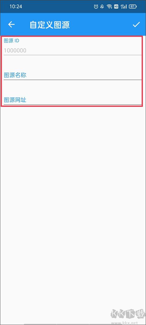 4、最后按照要求填寫圖源信息,包括圖源ID、圖源名稱、圖源網(wǎng)址等,確認無誤后點擊右上角的“對鉤”保存即可。