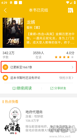 3、在書(shū)籍詳情界面,找到「章節(jié)列表」或「目錄」選項(xiàng),點(diǎn)擊進(jìn)入。